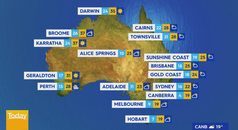 كما قال مكتب الأرصاد الجوية BOM أن السبت كان أبرد الأيام بالنسبة لملبورن وكانبيرا حيث تختبر أجواء شتوية مبكرة.