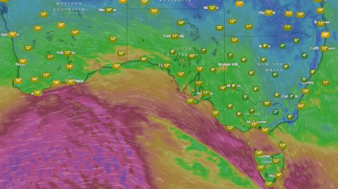 فمن المتوقع أن تشهد معظم المناطق الاسترالية هبوب رياح نشطة تتراوح سرعتها بين 80 و90 كيلومترًا في الساعة، وقد تصل سرعتها في المناطق الجبلية إلى 125 كيلومترًا في الساعة.