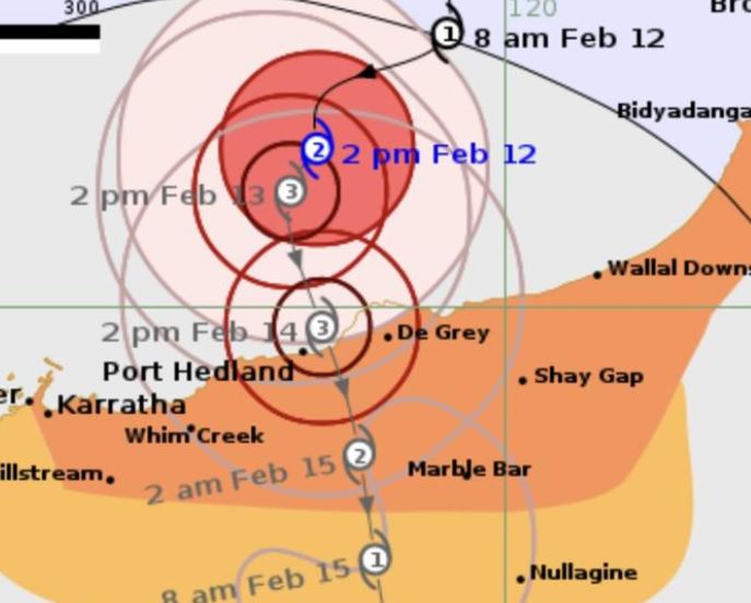 في مؤتمر صحفي عُقد يوم أمس، حذر مفوض إدارة الإطفاء وخدمات الطوارئ، دارين كليم، من تحرك الإعصار ببطء مما قد يطيل فترة تعرض المناطق الساحلية لرياح شديدة. وقال: “من المتوقع أن تكون المناطق الأكثر تأثرًا تلك الواقعة بين “Karratha” وWallal Downs””، بما في ذلك “Port Hedland”، بدءًا من مساء الخميس وحتى ليلة الجمعة”.