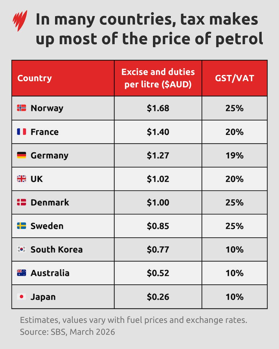 ورغم أن هذا الارتفاع ينعكس مباشرة على المستهلكين، يشير خبراء إلى أن الحكومة الأسترالية لا تتحكم إلا بجزء محدود من السعر النهائي، يتمثل في الضرائب، وعلى رأسها ضريبة الوقود (Excise) وضريبة السلع والخدمات (GST).