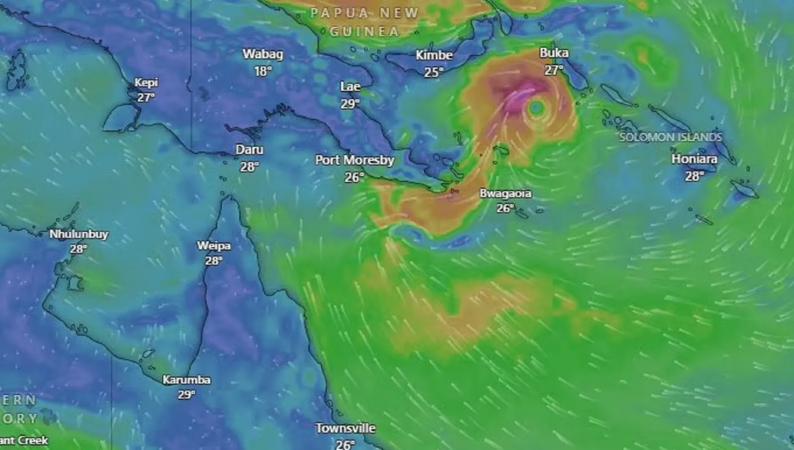ووفقاً لهيئة الأرصاد الجوية، تراجع الإعصار إلى الفئة الأولى بعد أن كان أقوى، ومن المتوقع أن يضعف أكثر خلال تحركه باتجاه جنوب بابوا غينيا الجديدة، قبل أن يصل إلى شمال كوينزلاند مطلع الأسبوع المقبل كنظام جوي ضعيف أو منخفض استوائي.